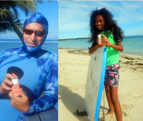 海洋環境にダメージを与える紫外線吸収剤や界面活性剤、更にシリコン油も含まない、肌にも自然にも優しい画期的な日焼け止めを開発。